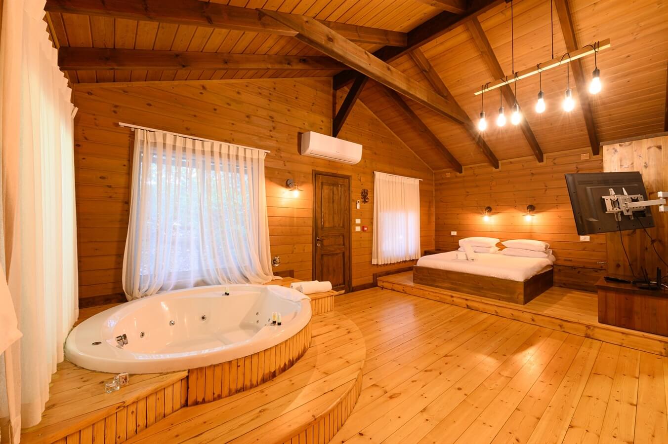 מיטה זוגית נוחה, ג'קוזי זרמים זוגי ועגול ובריכה פרטית מרעננת