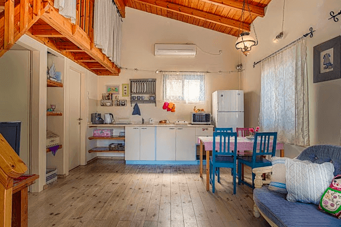 בצימר תיהנו מחדר שינה ממוזג ומואר עם מיטה זוגית ומצעים מפנקים, קומת גלריה ובה 4 מזרנים, חדר רחצה נקי ומטופח, ג'קוזי זרמים אינטימי ומפנק, סלון עם פינת ישיבה נוחה אל מול מסך טלוויזיה lcd ומכשיר dvd וכן מטבחון מדוגם ומאובזר בכל הדרוש להכנת ארוחות קלות במהלך החופשה - מקרר משפחתי גדול, כיריים, מיקרוגל, מכונת אספרסו, כלי אוכל והגשה ותבלינים. בנוסף, פינת אוכל המתאימה ל-4 אנשים.