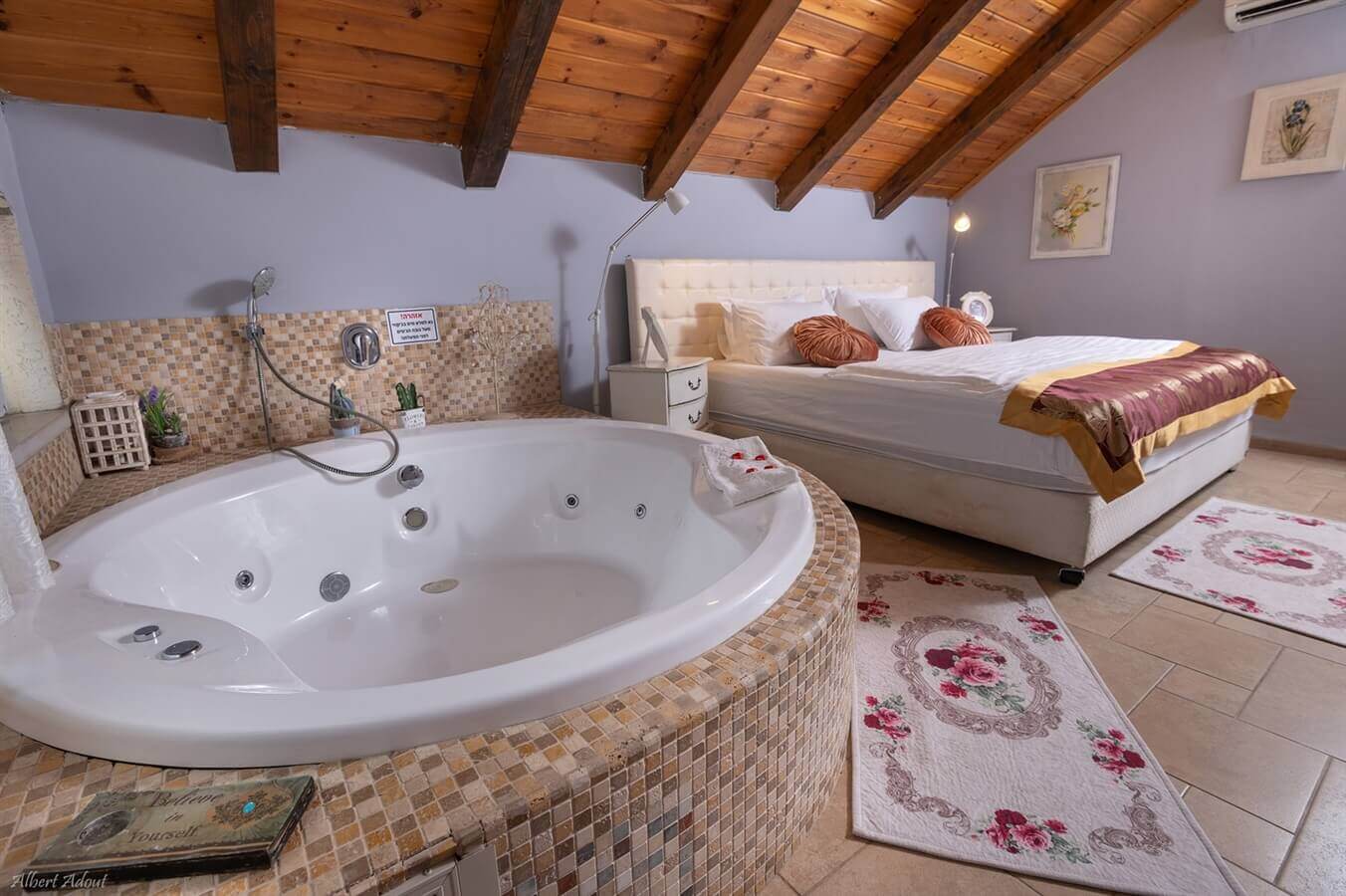 ג'קוזי זוגי מפנק, חדר שינה עם מיטה זוגית גדולה,