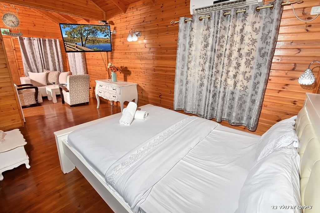 בקתה מפנקת ונעימה הכוללת מיטה זוגית, ג'קוזי פינתי חם ונעים, טלוויזיה עם חיבור לכבלים, פינת ישיבה, חדר רחצה מאובזר בסבונים ומגבות ושולחן אוכל זוגי. המטבחון כולל מקרר, מיקרוגל, קומקום, כיריים חשמליות, כלי אוכל ופינת קפה.