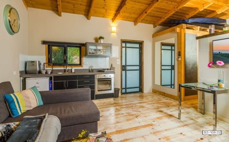- מטבחון באבזור של מקרר, בר מים, כיריים גז, תנור אפייה, פלטת שבת לשומרי המסורת והציבור הדתי, כלי הגשה, בישול ואכילה
