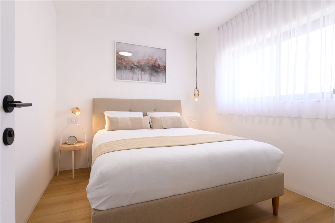 - חדר שינה עם מיטה זוגית וטלוויזיה חכמה