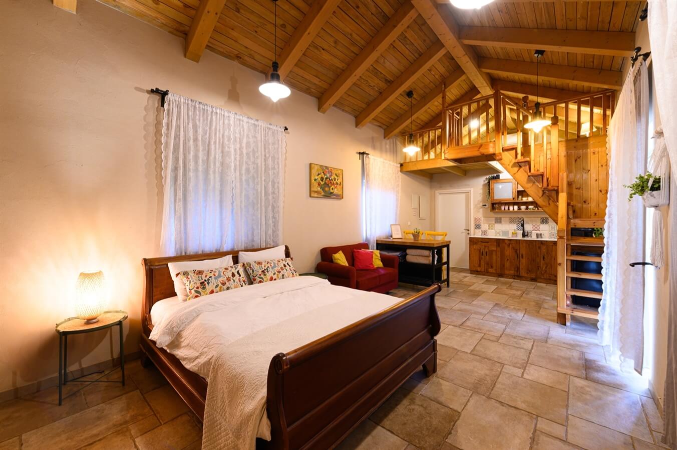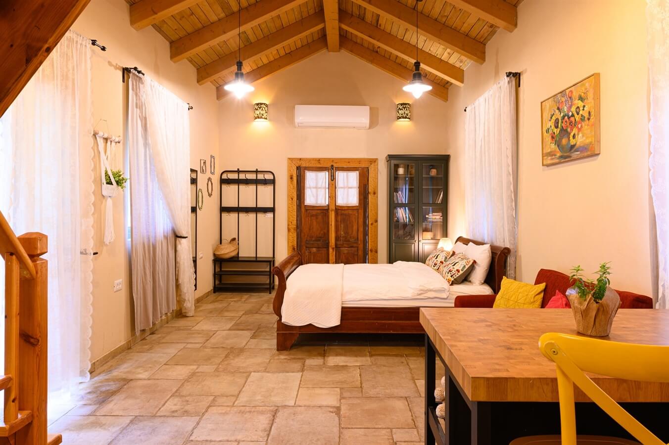 יחידת האירוח שלנו ממוזגת וכוללת 2 חדרי שינה, בהם מיטה זוגית בחלל פתוח וגלריה מדליקה ומהנה לשינה על מזרונים, מטבחון מאובזר עם מקרר ופינת קפה, אי עם כסאות בר לארוחה זוגית או לפגישה עסקית, מקלחת ושירותים, ספריה עם ספרי קריאה ועיון בנושאי גוף, נפש רפואה אלטרנטיבית, אמונה - כאלה שלא תרצו להניח מהידיים.