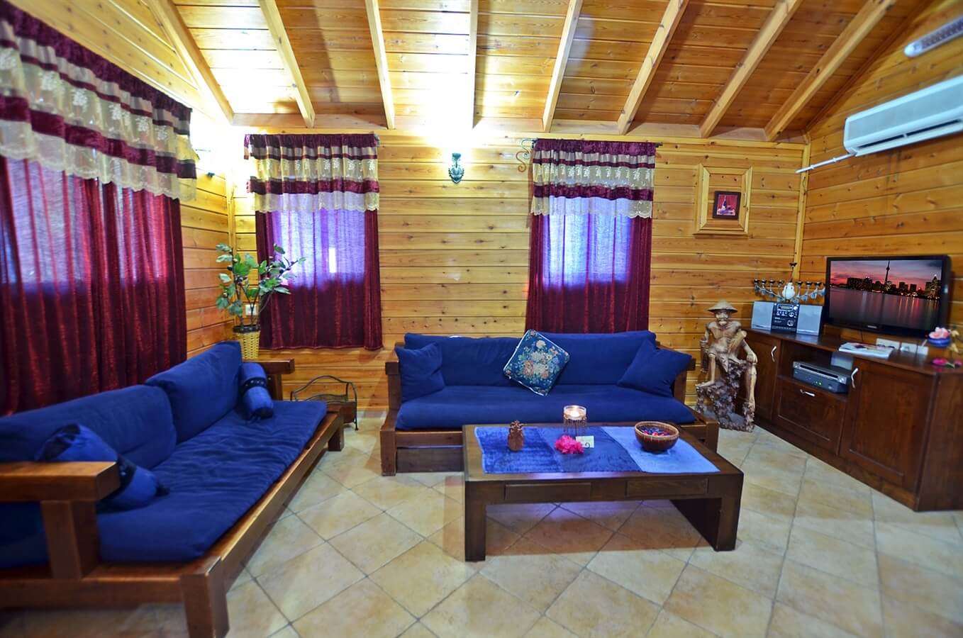 סוויטת התאנה (בקתה כחולה), סוויטת הרימון (בקתה ירוקה) וסוויטת הזית (בקתה סגולה) כוללות: