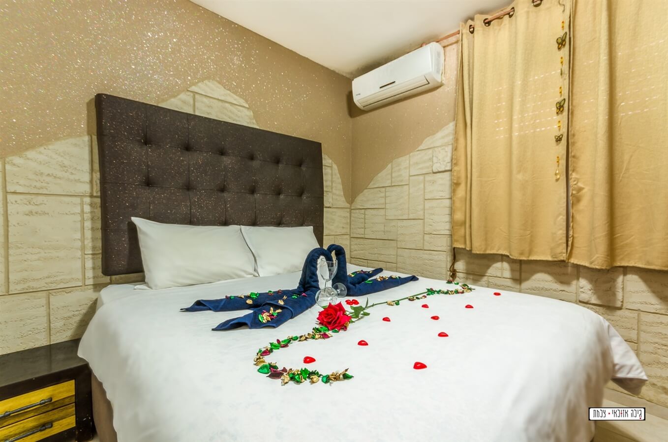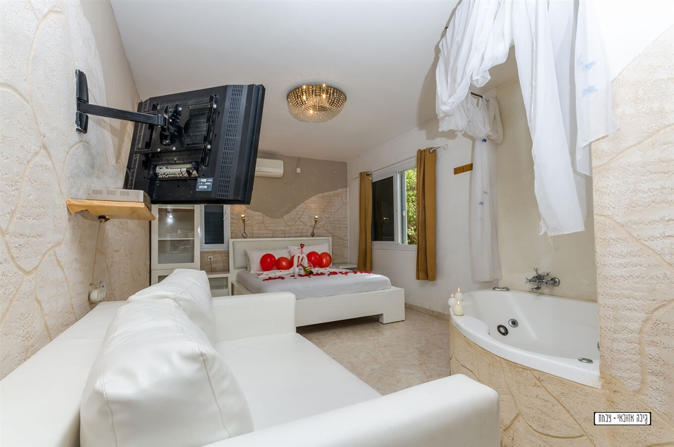- חדר שינה עם מיטה זוגית וג'קוזי ספא פרטי