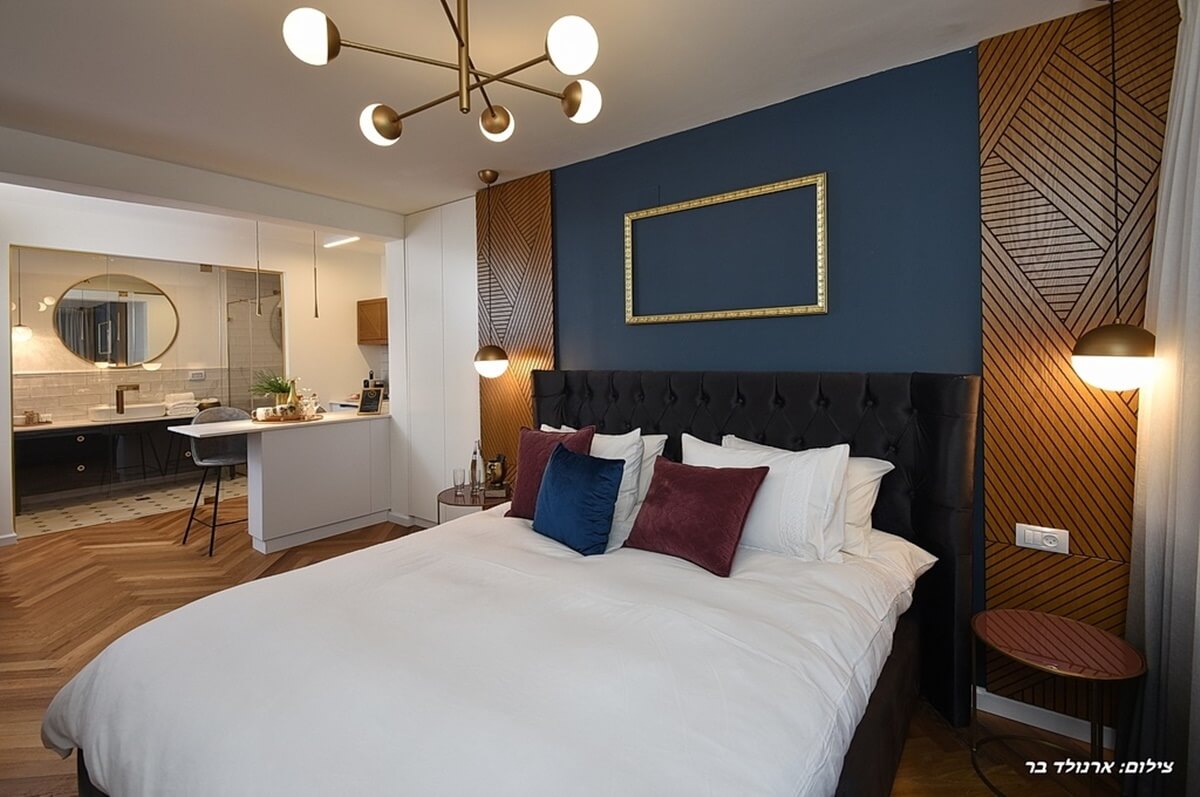 הסוויטה מעוצבת בקו נקי עם נגיעות זהב המתאימה לאירוח זוגות וכוללת: