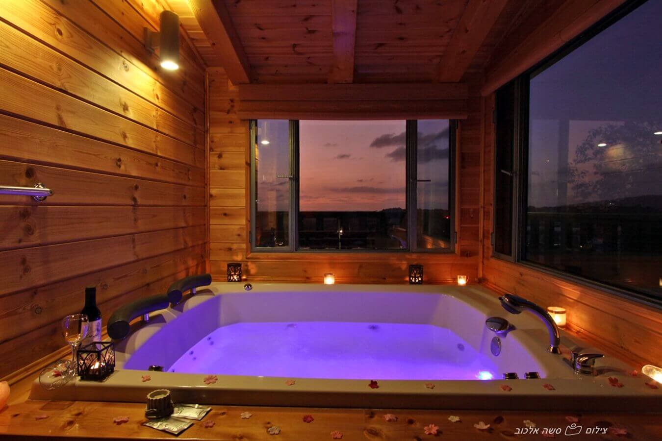 בסוויטה של 'בקתות מול השקיעה' תוכלו ליהנות מסאונה פרטית וג'קוזי מרווח עם תאורה רומנטית וחלון הפונה לנוף. עוד בסוויטה פינת אוכל מעץ, מיטה זוגית נוחה במיוחד, טלוויזיה בכבלים ומטבח מאובזר ובו מכונת אספרסו, יין משובח, מתוקים, פינת קפה ותה, מקרר, מיקרוגל וכלי הגשה.
