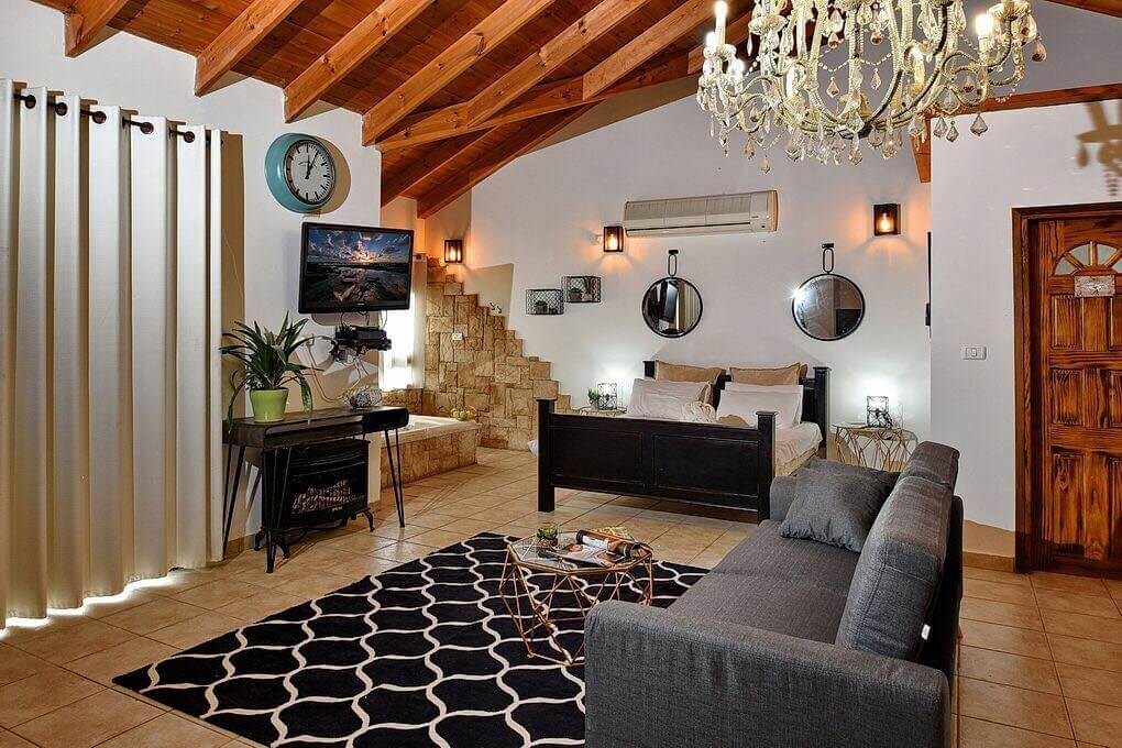 הסוויטות - כוללות ג'קוזי זרמים שלצידו חלון פנורמי הצופה לנוף הגלילי, שולחן אוכל, פינה סלונית מסוגננת עם מסך lcd בכבלים, קמין לעונת החורף ומטבחון מאובזר.