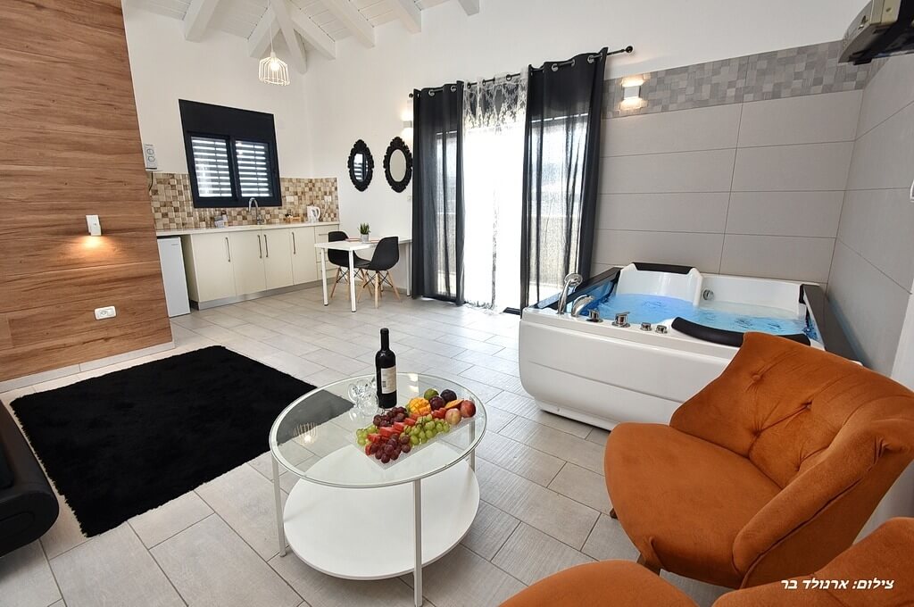 במתחם תיהנו מ-2 סוויטות מקסימות לזוגות ומשפחות עד 6 אנשים. בכל סוויטה תמצאו:ג'קוזי מפנק, מיטה זוגית גדולה, פינת ישיבה מרווחת עם טלוויזיה עם חיבור לכבלים, מטבח מאובזר הכולל פינת קפה, טוסטר אובן, מצנם, כיריים חשמליות וכלי אוכל וחדר רחצה מושקע עם מקלחת, שירותים מגבות ותחליבי רחצה.