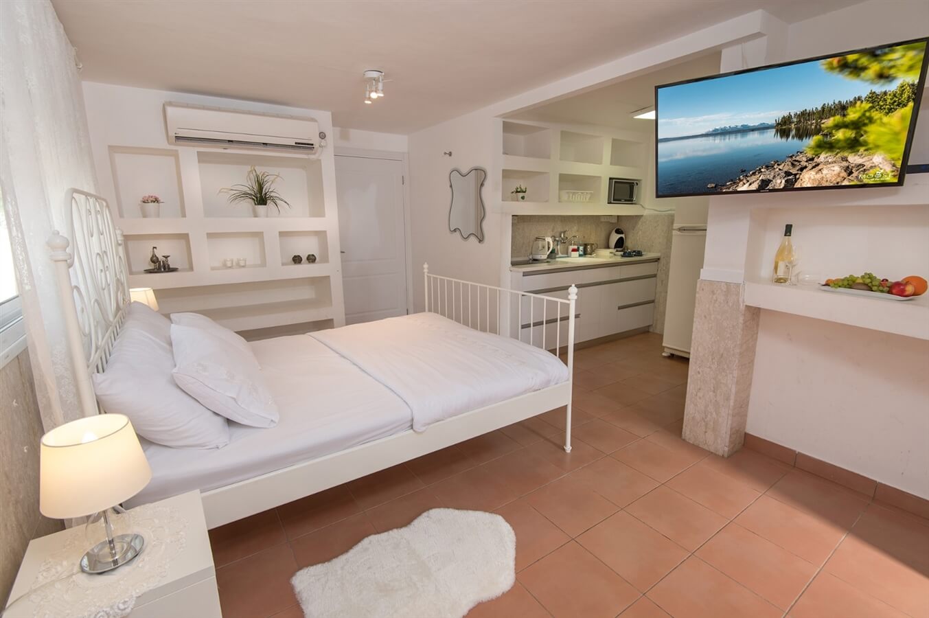 - מטבחון מאובזר במקרר גדול, מיקרוגל, קומקום חשמלי, פינת קפה וכלי אוכל