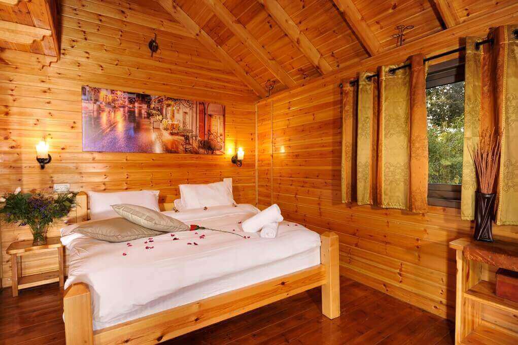 במתחם בקתות מאובזרות וחמימות בסגנון המתכתב עם הסביבה הכפרית: