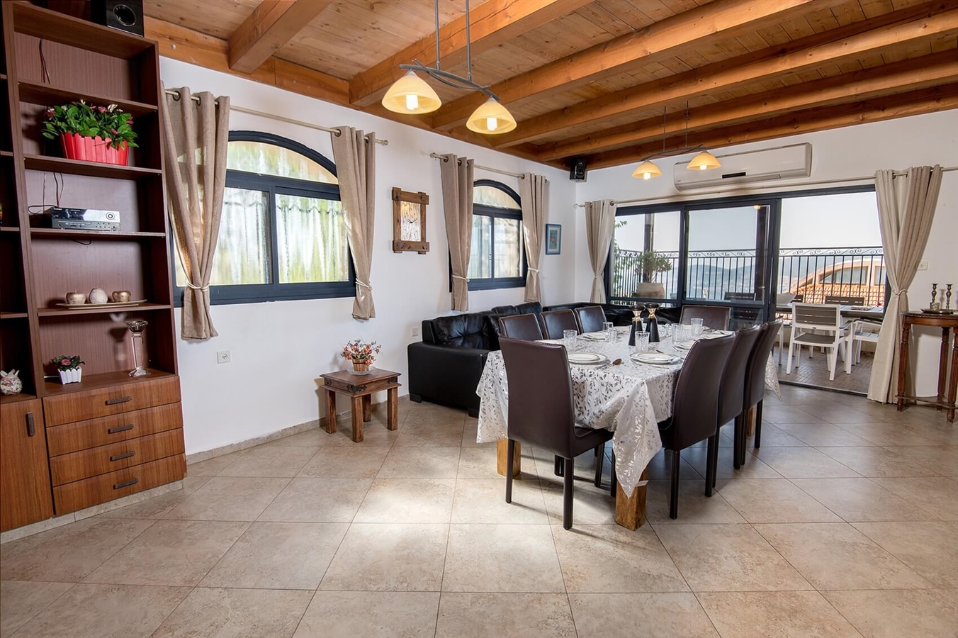 עם מערכת ישיבה יוקרתית ופינת אוכל משפחתיתיציאה למרפסת פרטית