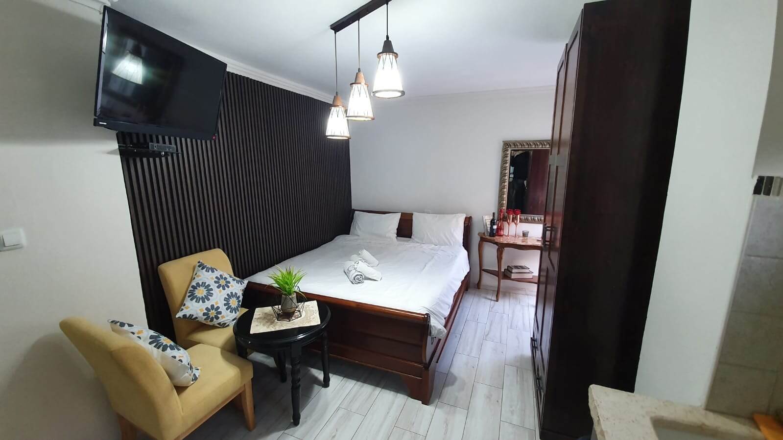יחידת אירוח מאובזרת המתאימה לאירוח משפחה זוג+3 עם חדר שינה נפרד עם מיטה זוגית עם מזרן אורטופדי, ספות נפתחות, פינת אוכל, מיזוג אוויר, חדר רחצה מאובזר, טלוויזיה בחיבור לערוצי כבלים, פינות ישיבה, פינות אוכל ומטבחון מאובזר עם פינת קפה, קומקום חשמלי, מיקרו, כיריים ומיקרו.