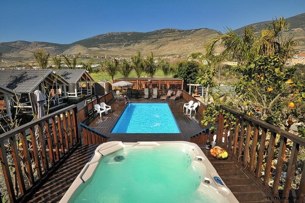 בקתות עץ עם ג'קוזי ומרפסת פרטית