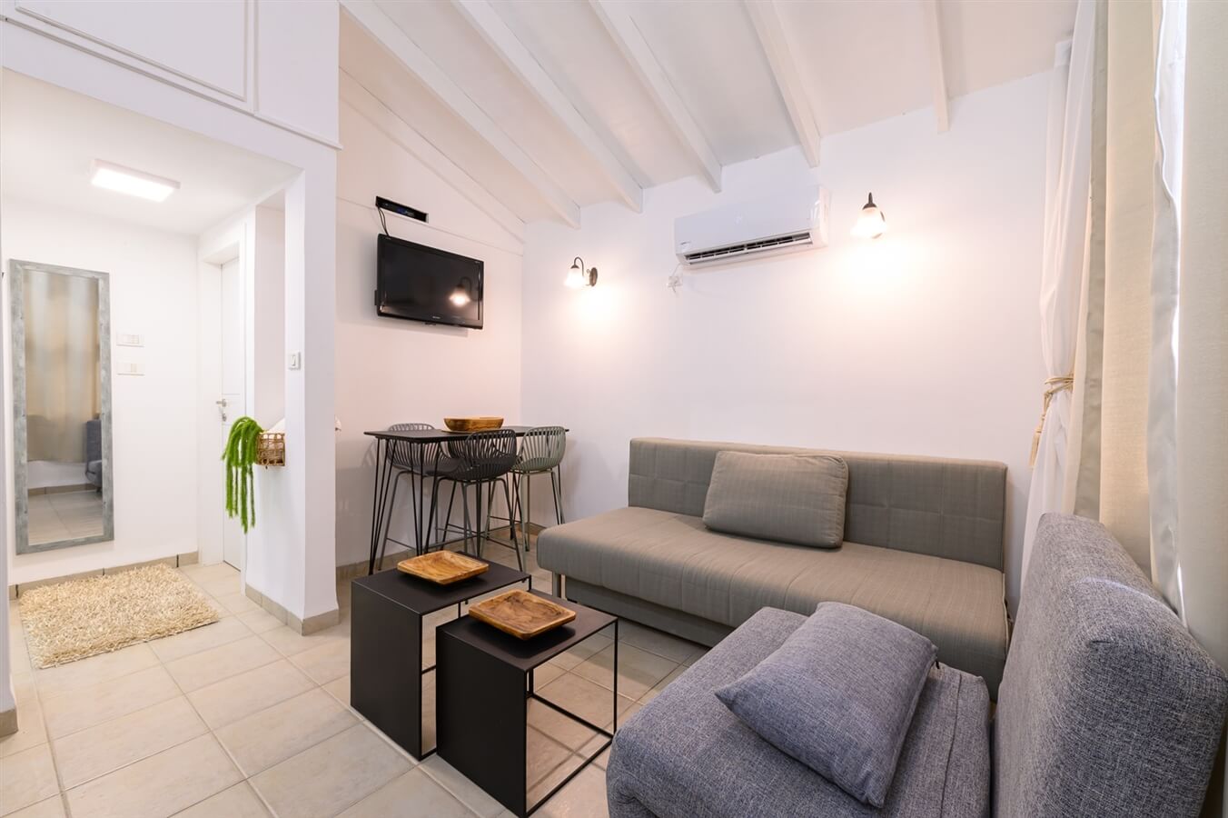 - סלון עם פינת ישיבה מרווחת ומסך lcd עם חיבור לכבלים ולאינטרנט