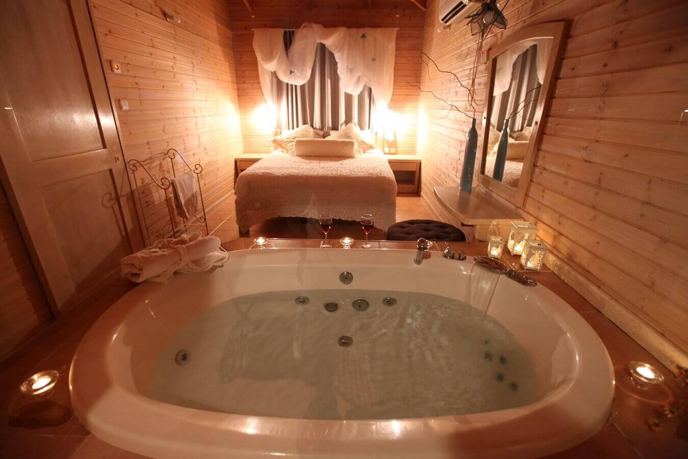 קסם התכלת (סוויטה זוגית): סוויטה מקסימה בגודל 40 מר' המתאימה לאירוח זוג / זוג +2, כוללת חדר שינה זוגי, ג'קוזי זרמים מפנק, סלון הכולל פינת ישיבה, טלוויזיה + כבלים, פינת אוכל, פינת קפה, חדר רחצה, מרפסת פרטית.