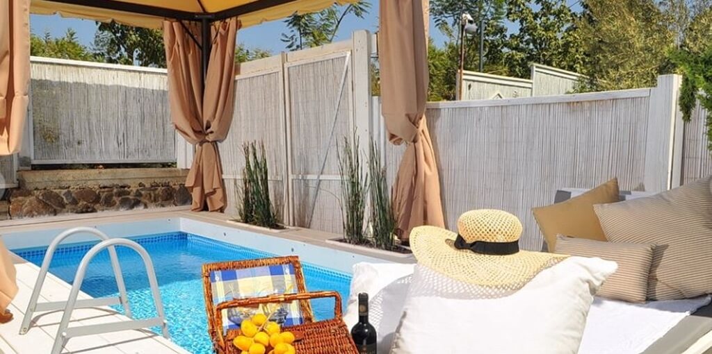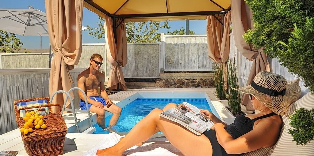 הסוויטה הטוסקנית מעוצבת בסגנון איטלקי מעורר הדראה ובה גן פרטי עם ג'קוזי מפנק ובריכה מחוממת ומקורה.