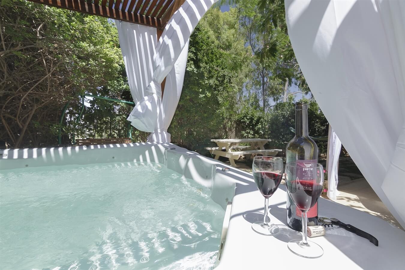חצר נעימה המוקפת צמחייה ירוקה ומטופחת ובה תיהנו מבריכה גדולה, ג'קוזי ספא (פעיל בין החודשים מרץ - ספטמבר), פינות ישיבה וערסלים ועמדת מנגל פחמים.