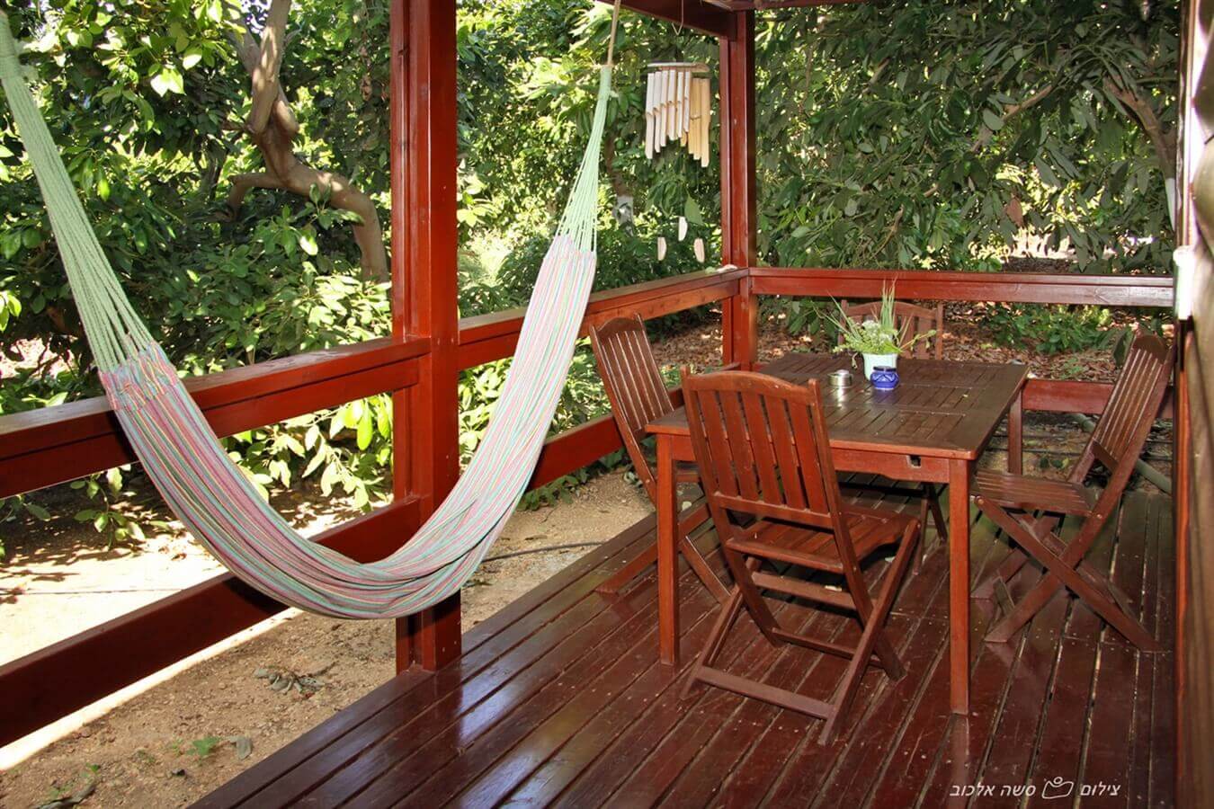 בגינה המקיפה את הבקתות תיהנו מעצים וצמחיה עשירה, ערסלים, כיסאות נוח, פינת ישיבה, עמדת מנגל וחניה פרטית.