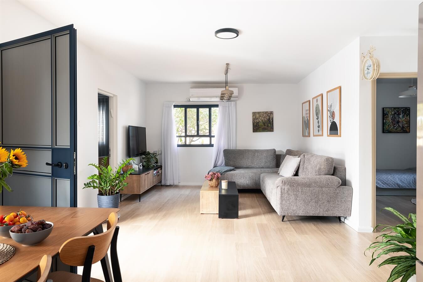 - סלון עם מערכת ישיבה וטלוויזיה חכמה בחיבור כבלים ונטפליקס