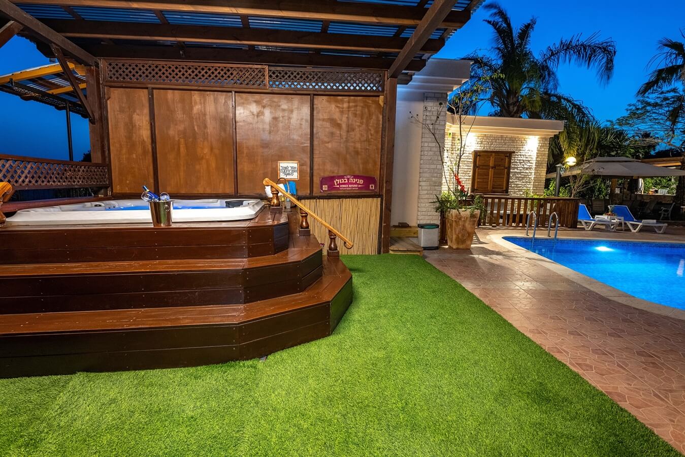 - מתחם ספא גדול עם סאונה יפנית יבשה, ג'קוזי, שולחן פינג פונג ועמדת BBQ.