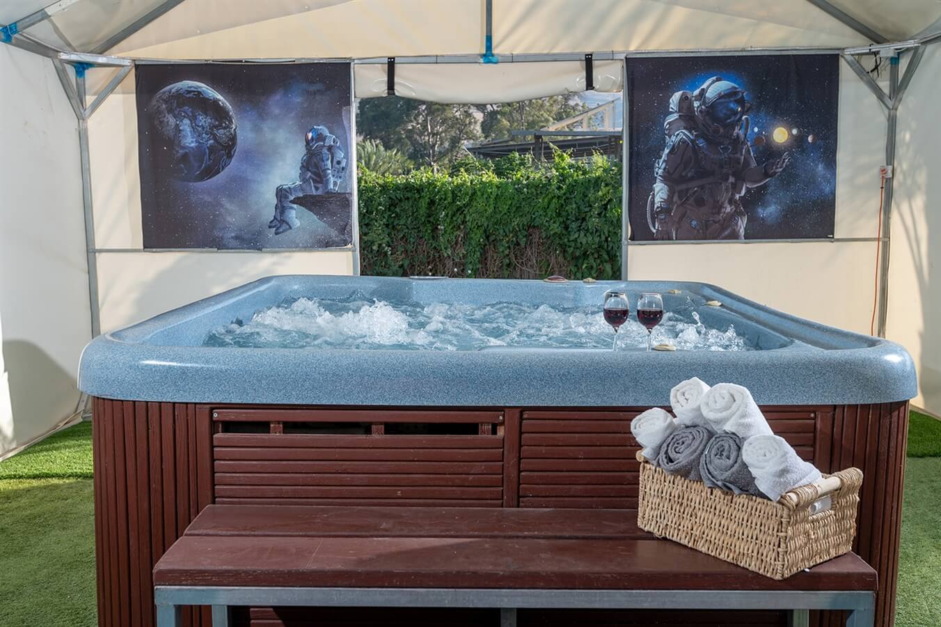 - ג'קוזי ספא זרמים הממוקם במאהל אירוח מקורה בחצר המשותפת