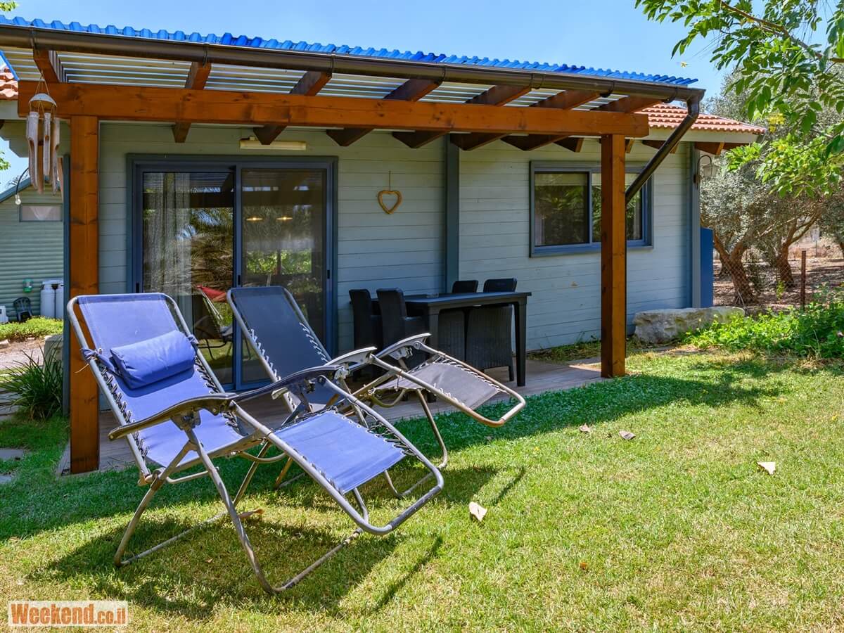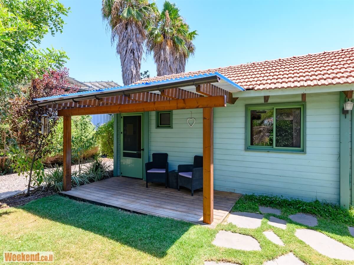 - דק ופרגולה מבודדים מהם נפתחת החצר ובה פינת ישיבה על מדשאה פרטית, ערסל ונדנדה גדולה