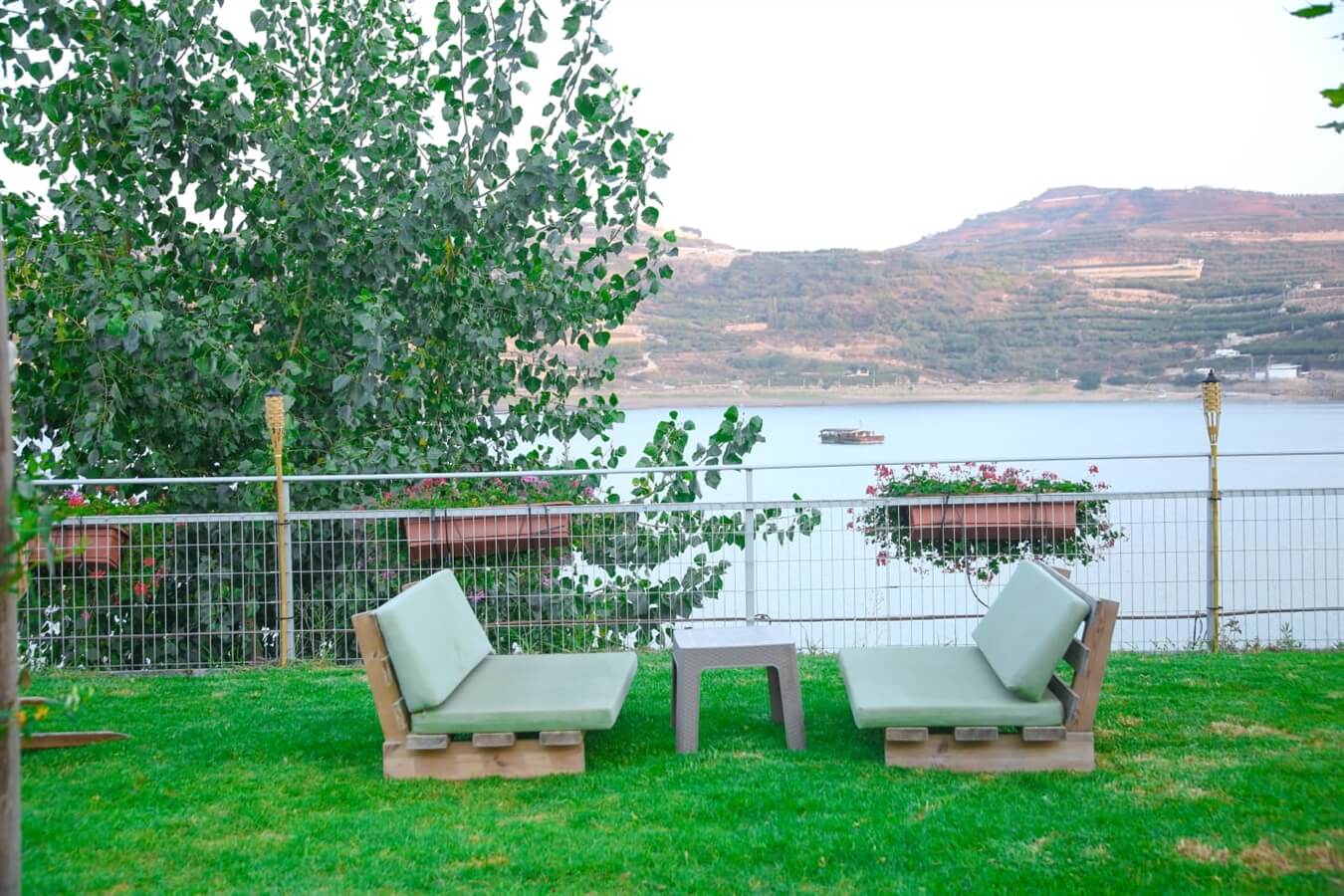 - בחצר המושקעת והמטופחת תוכלו לשבת ולהירגע אל מול נוף קסום הצופה לברכת רם. בנוסף, יש פינות ישיבה, ערסלים ופינות מנגל.
