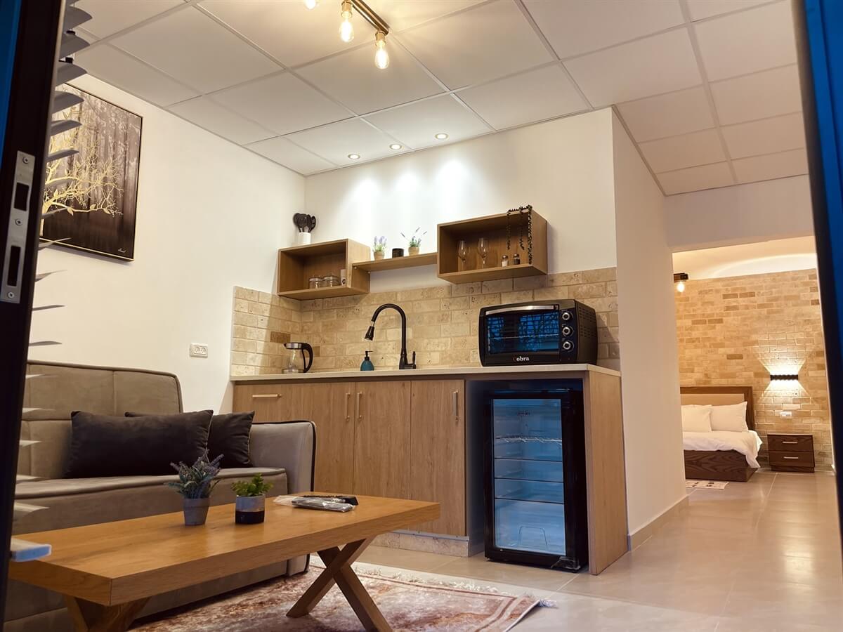 סוויטה מרווחת, נעימה ומעוצבת עם חדר שינה עם מיטה זוגית איכותית, סלון גדול עם מערכת ישיבה הנפתחת למיטה זוגית, מטבחון מאובזר בטוסטר אובן, מקרר, כלי אוכל ופינת קפה עם קומקום תה, קפה וחלב, חדר רחצה תחליבים ומגבות ואינטרנט חופשי. לאירוח עד 4 נפשות.