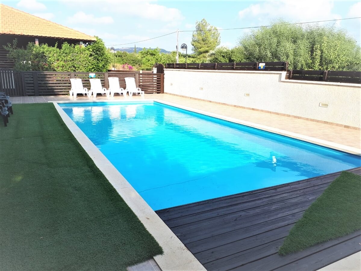 בריכה, חצר ירוקה ופינות ישיבה מוצלות