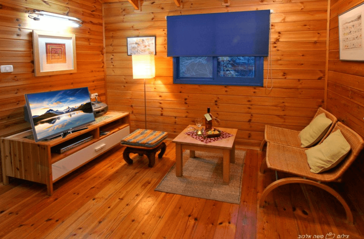 הקומה התחתונה מהווה מבוא ובה מטבחון, פינת אוכל, אמבט ג'קוזי. מדרגות עץ מובילות לקומת מגורים מרווחת הספונה עץ ובה מיטה זוגית, טלוויזיה, מערכת שמע ופינת ישיבה ומרפסת עם פינת ישיבה.