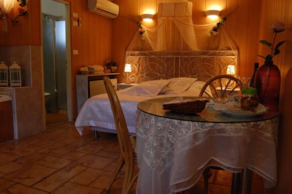 סוויטה זוגית ובה ג'קוזי פינתי זוגי בחלל החדר. בסוויטה מיטת אפיריון זוגית עם מצעים מלטפים, טלוויזיה בכבלים, מכשיר dvd, מערכת סטריאו, מיזוג אוויר ופינת ישיבה. בנוסף, בחדר פינת אוכל ומטבחון מאובזר הכולל מקרר, מיקרוגל, פינת קפה וכלי אוכל. לנוחיות האורחים מקרר ובו כלל המצרכים הנדרשים להכנת ארוחת הבוקר.