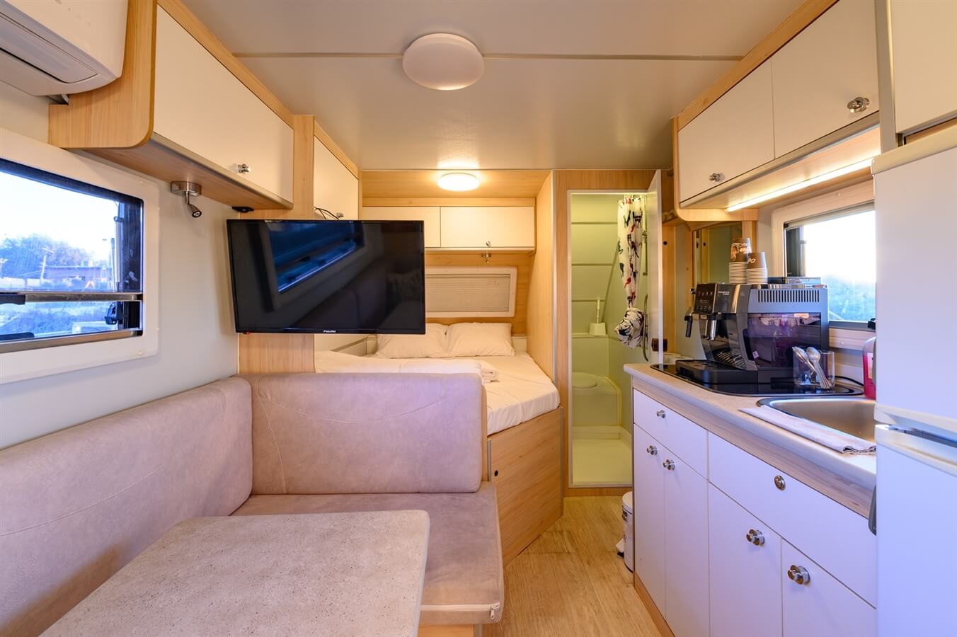 - צימר שלישי הוא קראוון שמתאים לזוג +3 עם מיטה, טלוויזיה ומטבחון