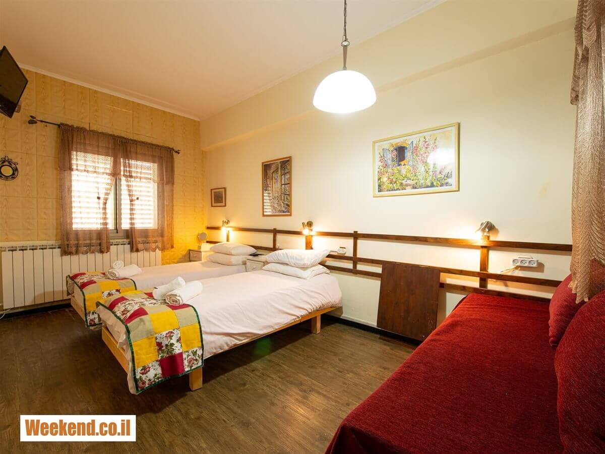 * 2 חדרים מיועדים לזוגות ו-4 חדרים מיועדים לזוג+ילד.