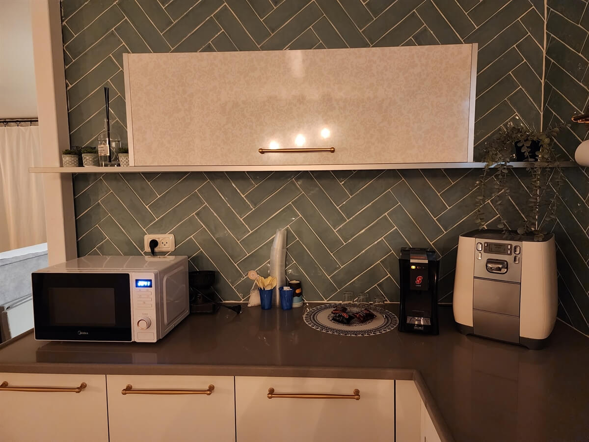 - מטבח מאובזר עם פינת קפה הכוללת מכונסת אספרסו וקפסולות, מקרר, תנור, בר מים, מיקרוגל ועוד
