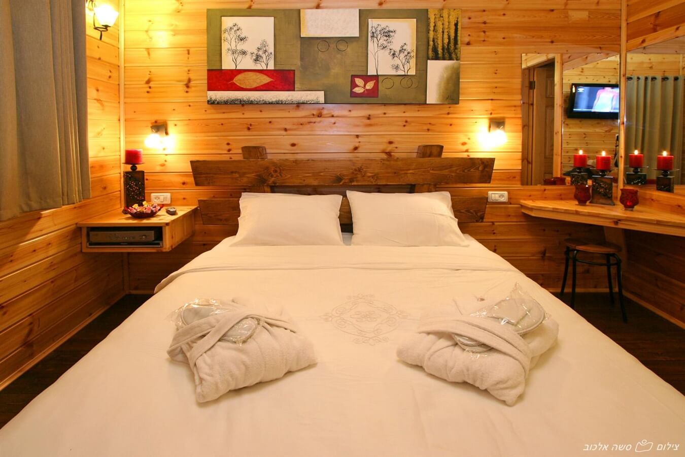 בקתות הספא - ג'קוזי, סאונה יבשה וקמין בכל בקתה, הבקתות של שילובים בטבע בנויות מעץ מלא ואיכותי ומעוצבות בסגנון כפרי וחמים. בכל אחת מהבקתות: