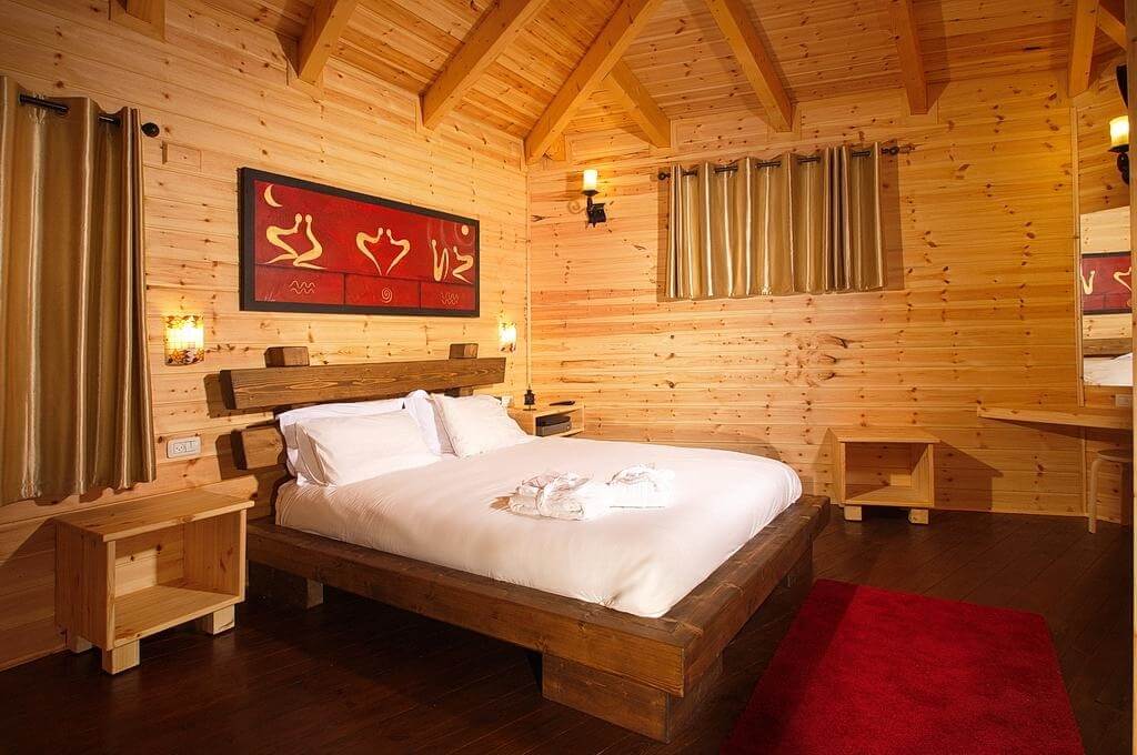 בקתות העץ מעוצבות בסגנון כפרי וכוללות: