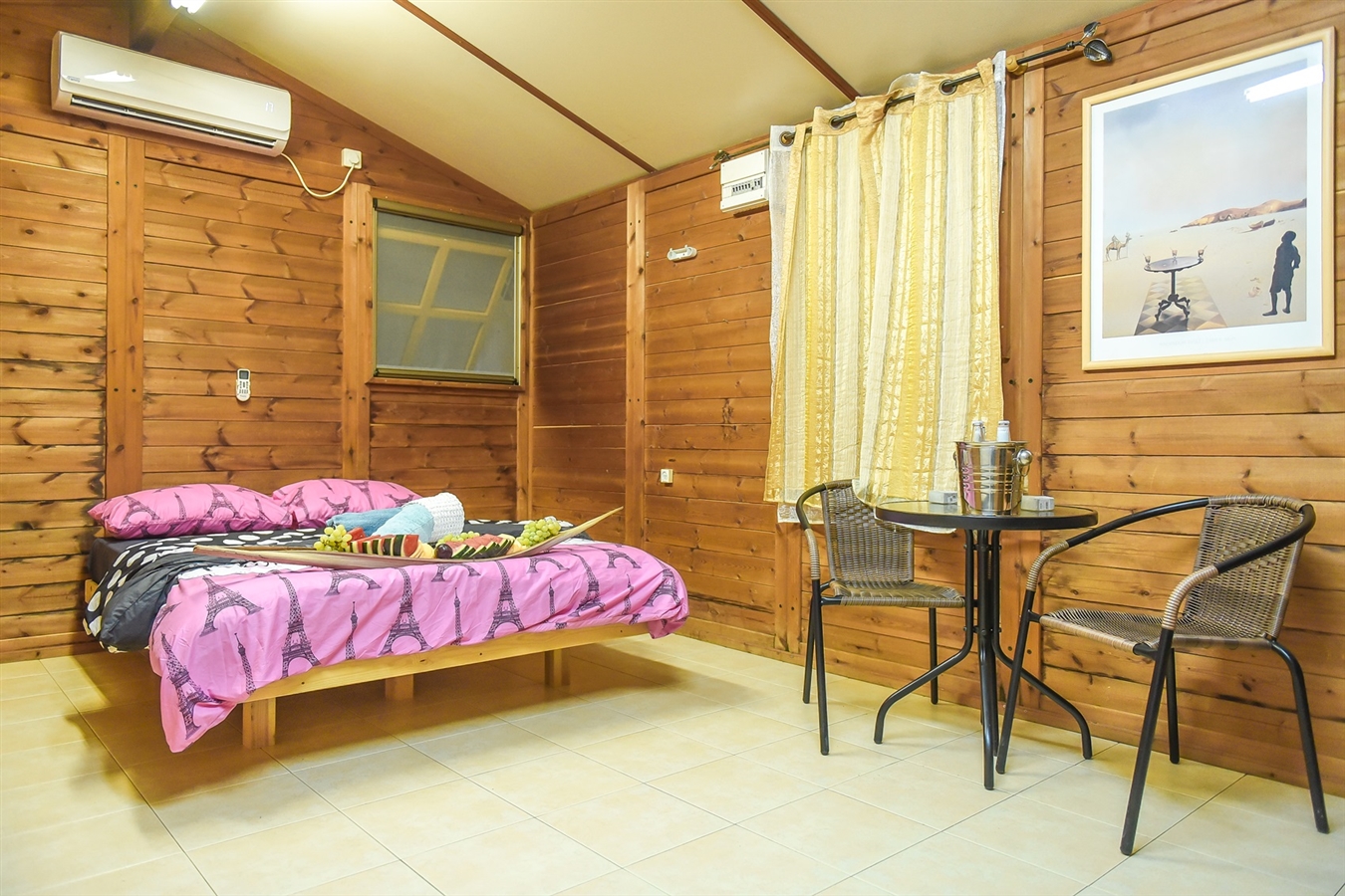 בקתת העץ הכפרית מעוצבת, מאובזרת ומתאימה לזוגות ולזוג + 2. בבקתה תיהנו מפינת ישיבה עם מסך lcd בכבלים, מיטה זוגית מרווחת, חדר רחצה מפנק עם מגבות רכות ותחליבי רחצה ומטבחון מאובזר עם מקרר, מיקרוגל, כיריים חשמליות, קומקום חשמלי ופינת קפה. בתיאום מראש, ניתן לקבל מיחם ופלטה לשבת.
