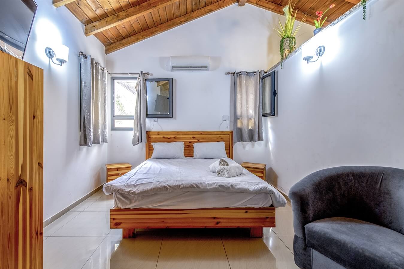 - חדר שינה עם מיטה זוגית מרווחת