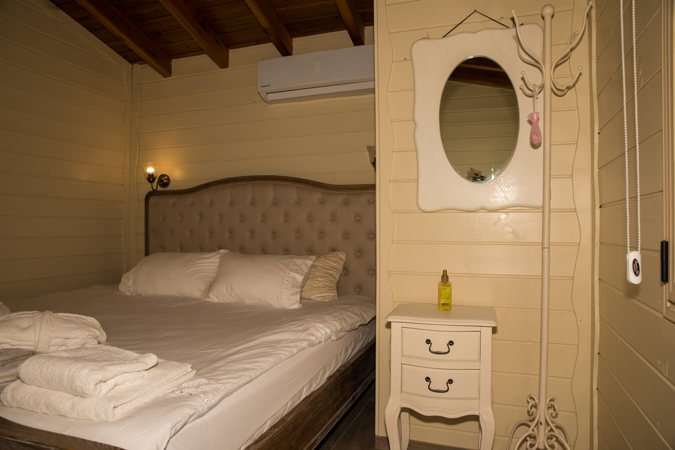 פרטיות מלאה להורים - בקתה אחת מציעה חדר שינה נפרד להורים וגלריית שינה נוספת בה ניתן ללון זוג נוסף או ילדים והבקתה השנייה כוללת 2 חדרי שינה נפרדים – חדר עם מיטה זוגית וחדר נוסף עם מיטת קומותיים לילדים. בכל בקתה ג'קוזי.