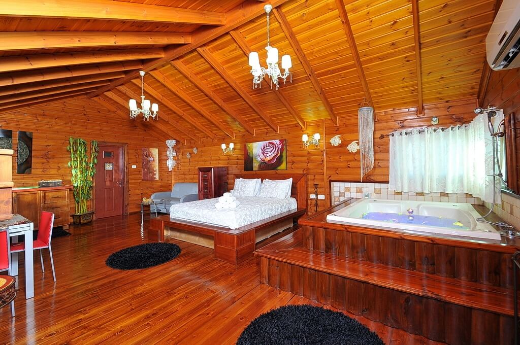 הסוויטה הזוגית: סוויטה בעיצוב Open Space לזוג או זוג + 1 עם מיטה זוגית גדולה וג'קוזי זרמים פרטי.