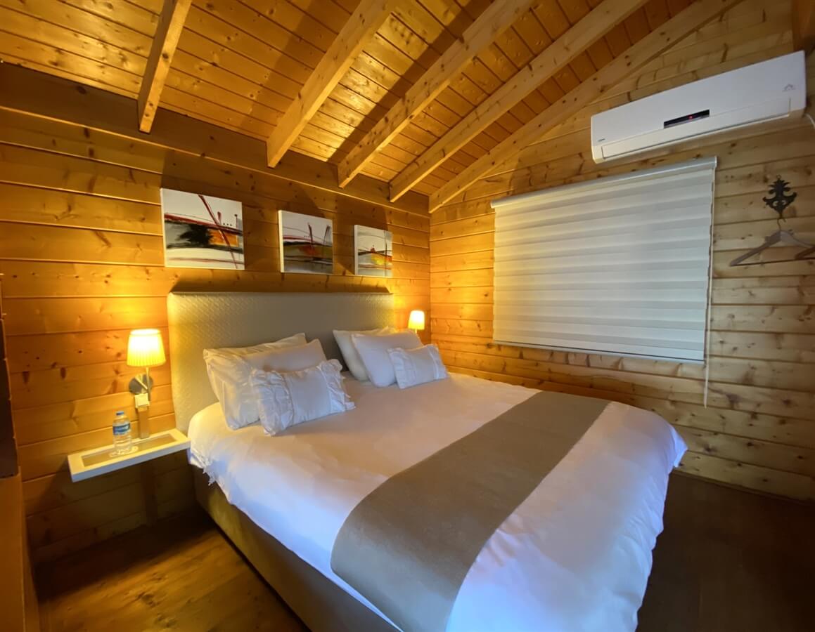 בקתות העץ מרווחות וכוללות אבזור של: