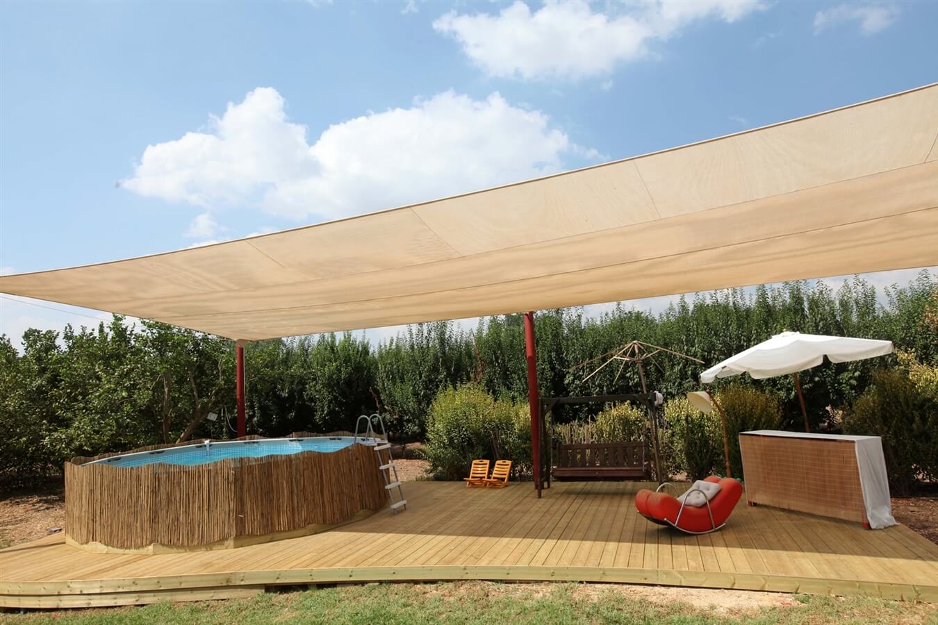 יובל מארח מקסים, בריכה מוצלת, חצר ירוקה, קפה מפנק, בקתה ממש יפה