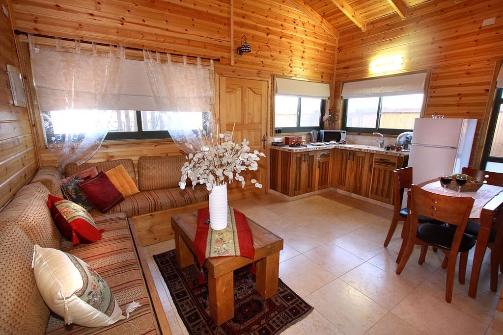 בית עץ חמים בסגנון כפרי לזוגות ומשפחות עד 4 איש הכולל: