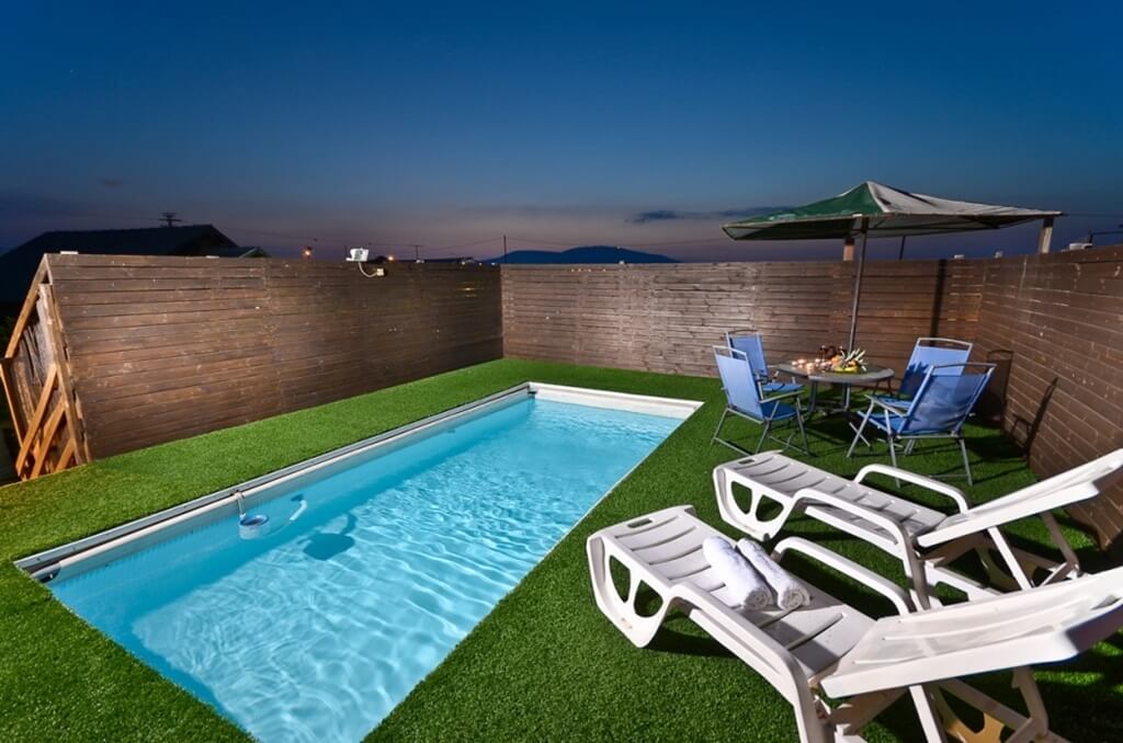 מחוץ לבקתות חצר גדולה, ירוקה ומהנה עם 2 בריכות שחיה - אחת מהן מחוממת בעונת החורף והשניה צלולה ומרעננת כל ימות השנה. סביב בריכות שחיה והבקתות מיטות שיזוף, שמשיות, מדשאות ירוקות, פינות ישיבה מוצלות, שולחנות פיקניק, עמדות bbq, נדנדות כפריות, עצים ופרחי נוי, תאורה לילית מקסימה ומבט להרי הגליל המופלאים.