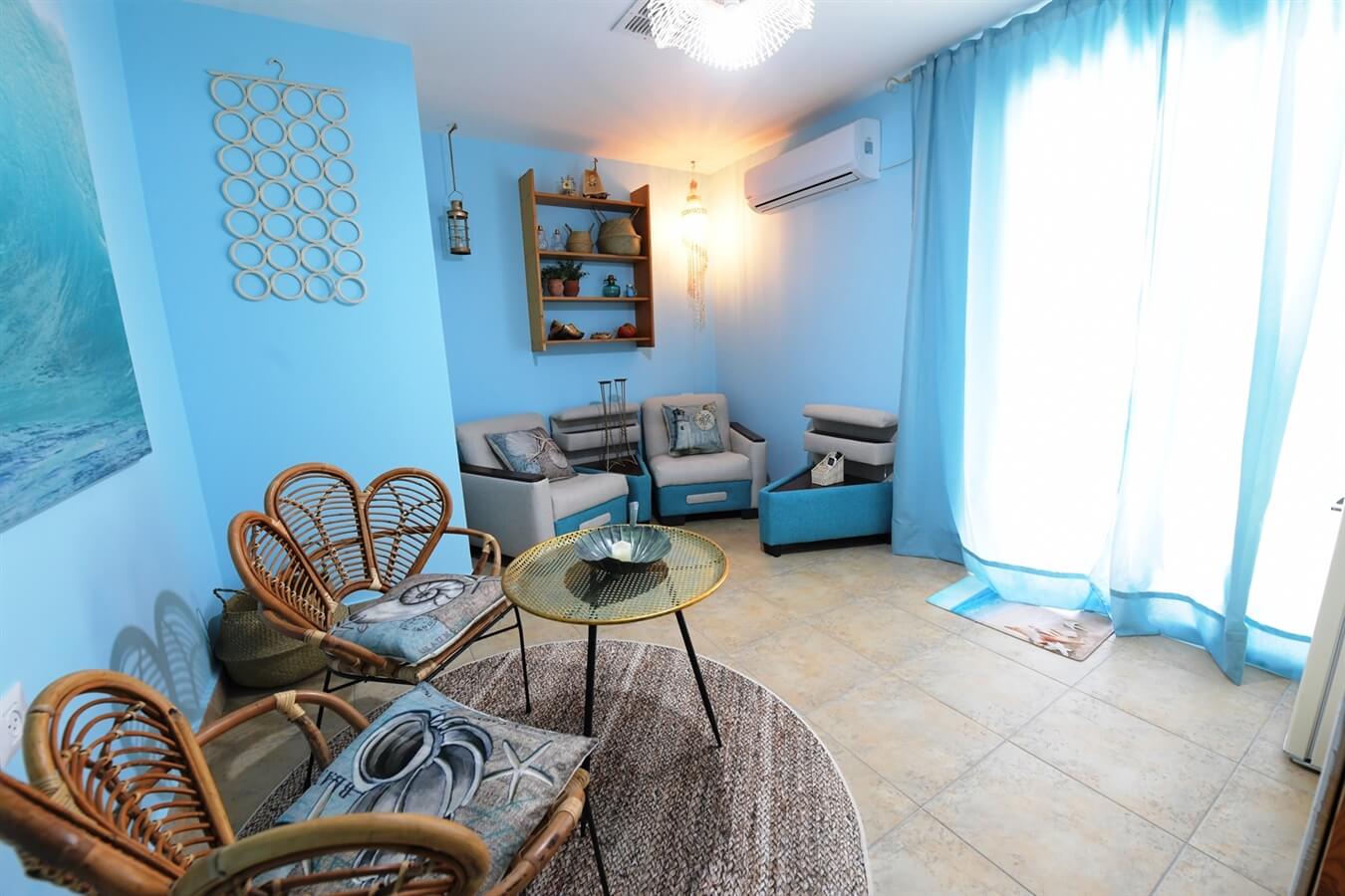 - בסלון: 2 פינות ישיבה, טלוויזיה 50 אינץ' בחיבור לכבלים, מיני מקרר