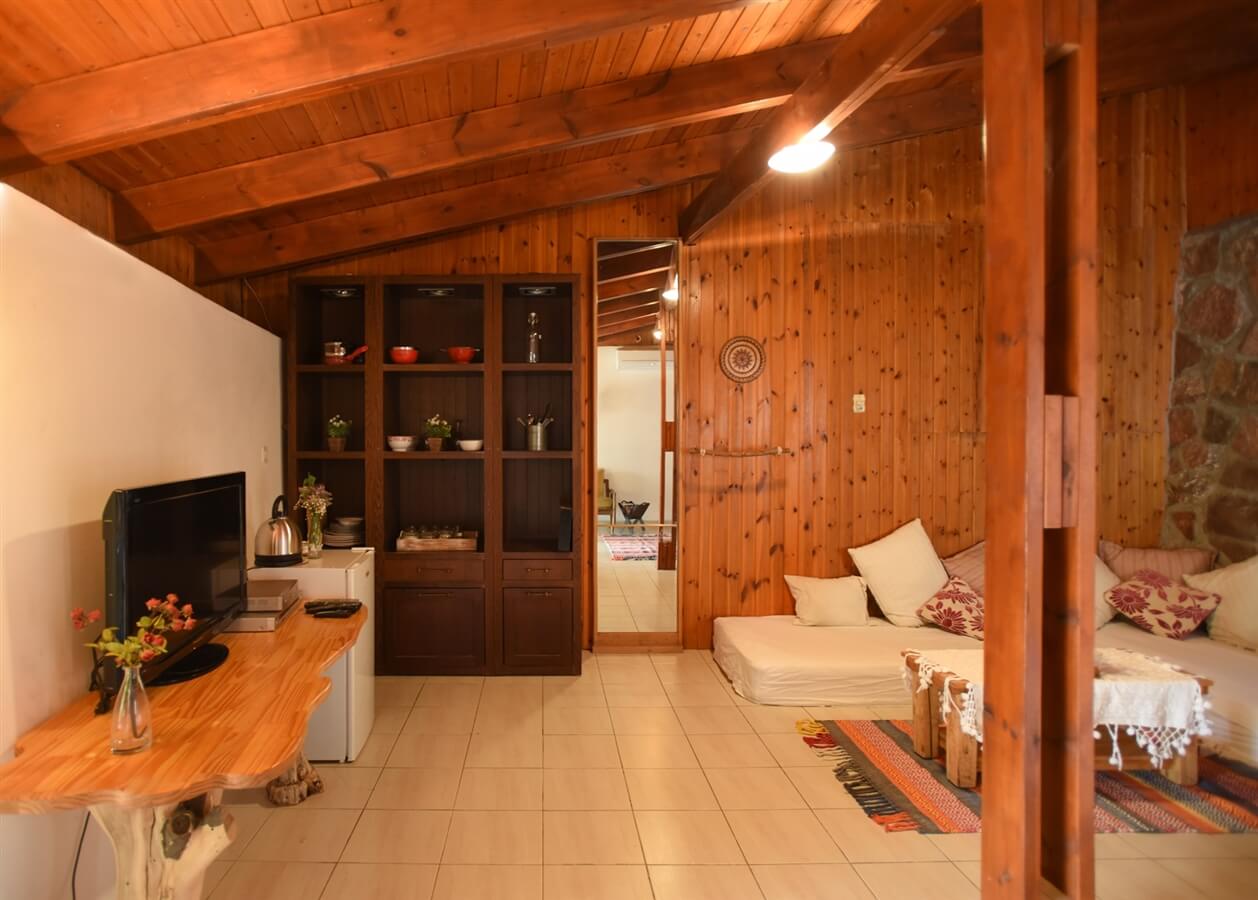 לחדר מרפסת אחורית הנושקת להר ומציעה מקום שליו ומוגן. החדר כולל מיזוג אויר, שירותים ומקלחת ומטבחון (כולל גז לבישול). מיטה זוגית וגלריה עליונה עם מזרן זוגי נוסף לחודשי החורף- מיזוג אוויר