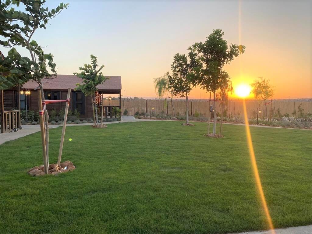 במתחם תוכלו ליהנות מיופיו של דשא ירוק ובוסתן מרהיב של עצי פרי ותבלינים, מקום נהדר לקמפינג או מדורה עם כל המשפחה אל מול נוף הרי אדום.