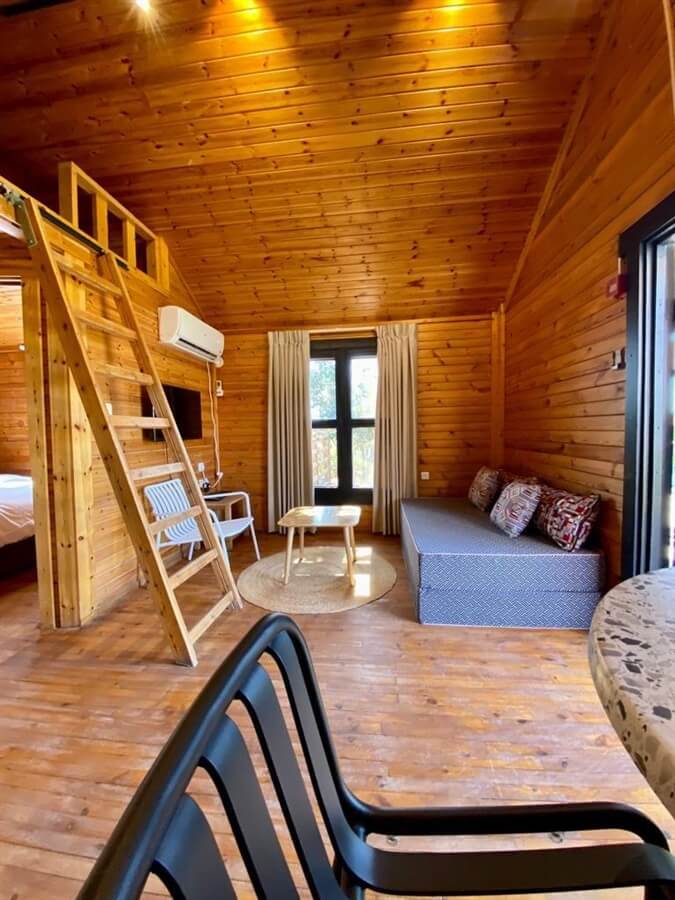 4 יחידות אירוח לחופשה נעימה המתאימה לאירוח עד 5 נפשות. כל בקתה מעוצבת כחלל פתוח וקומת גלריה וכוללת: