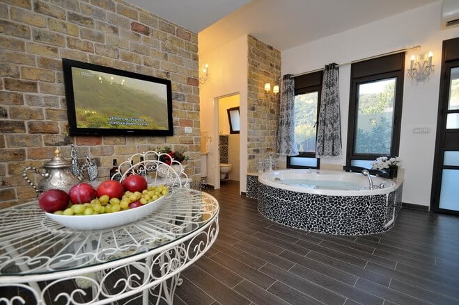 במתחם הנופש שלנו תיהנו מ-2 סוויטות יוקרתיות לזוגות ומשפחות. בכל סוויטה תמצאו ג'קוזי גדול, מיטה זוגית גדולה, חדר רחצה מפואר עם מגבות ותמרוקים, פינת ישיבה עם טלוויזיה בחיבור לכבלים ומקרר עם מיקרוגל, מקרר, כיריים חשמליות, כלי בישול, הגשה ואכילה, פינת קפה ותה, בר מים, חלב, קומקום וטוסטר לחיץ.